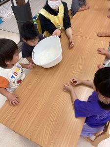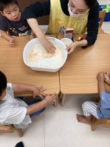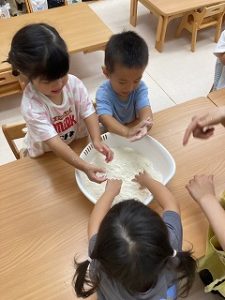子どもたちのリクエストでオレンジ色の小麦粉粘土を作りました!