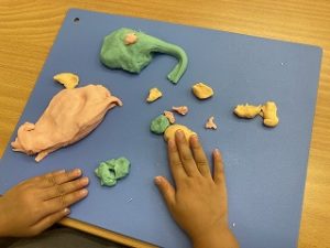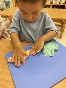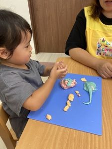 粘土板の上でいろいろなものを表現して楽しそうな子どもたちでした🐘