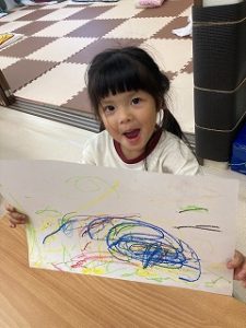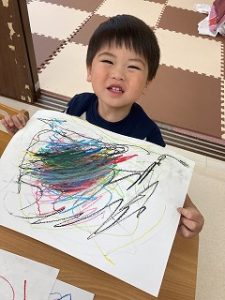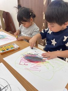 いろんな色で真剣に絵を描く子どもたちです🤔