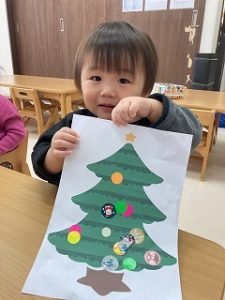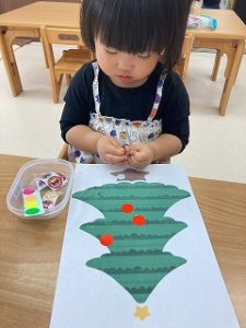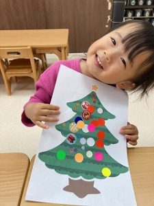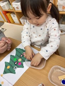 指先を上手に使っていろいろな大きさのシールをめくって貼り進めてくれました🎄