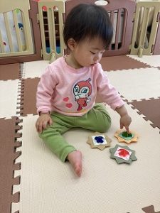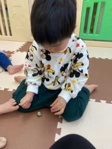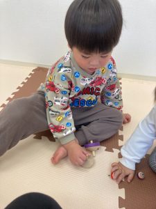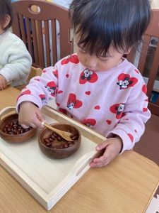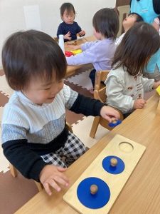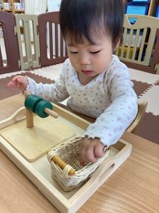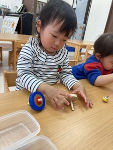 自分で気になる教具を持ってきて楽しんでいます☺️