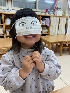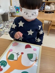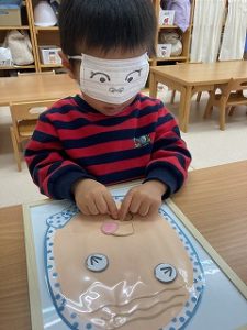 目隠しをして福笑い